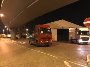Stačí jet od výjezdní kontroly šasi vlevo, dojedeme k celníkovi, kterému dáme dokument pro něj, a jsme rychle z přístavu venku a brzy i na dálnici.