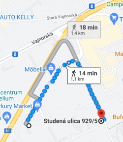 Nebo po předání si dojdeme pěšky 1,4 km na distribuční místo: