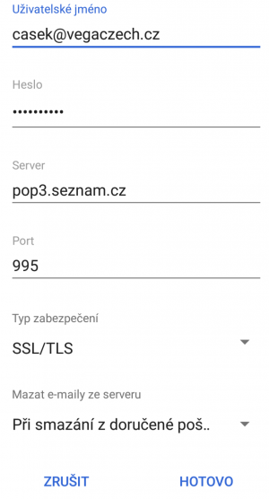 Napíšeš celou emailovou adresu, a nastavíš za tím - vlastní adresa, a dáš přidělené heslo.